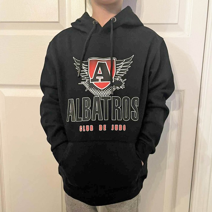 - Modèle: Chandail à capuchon noir enfant Albatros/Dojo Domaine-du-Roy